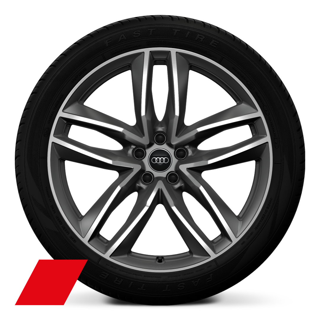 Легкосплавные диски Audi Sport, дизайн «5 двойных спиц», матовый titan, с полированной обводкой, размер 9.5Jx21, с шинами 285/40 R21